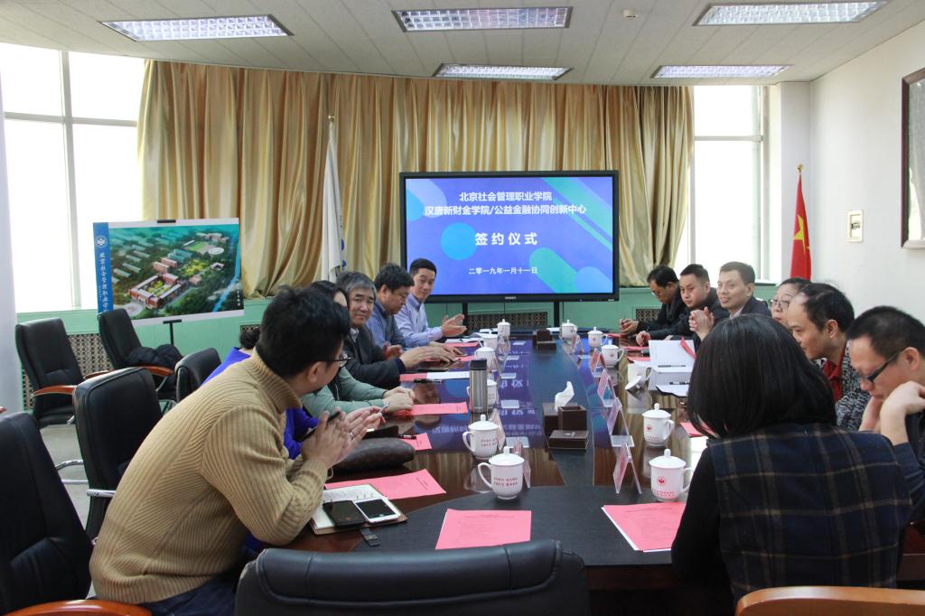 1月11日周五下午1:00在金年会办公楼四楼会议室举行了成立“汉唐新财金学院暨公益金融协同创新中心”签约仪式。